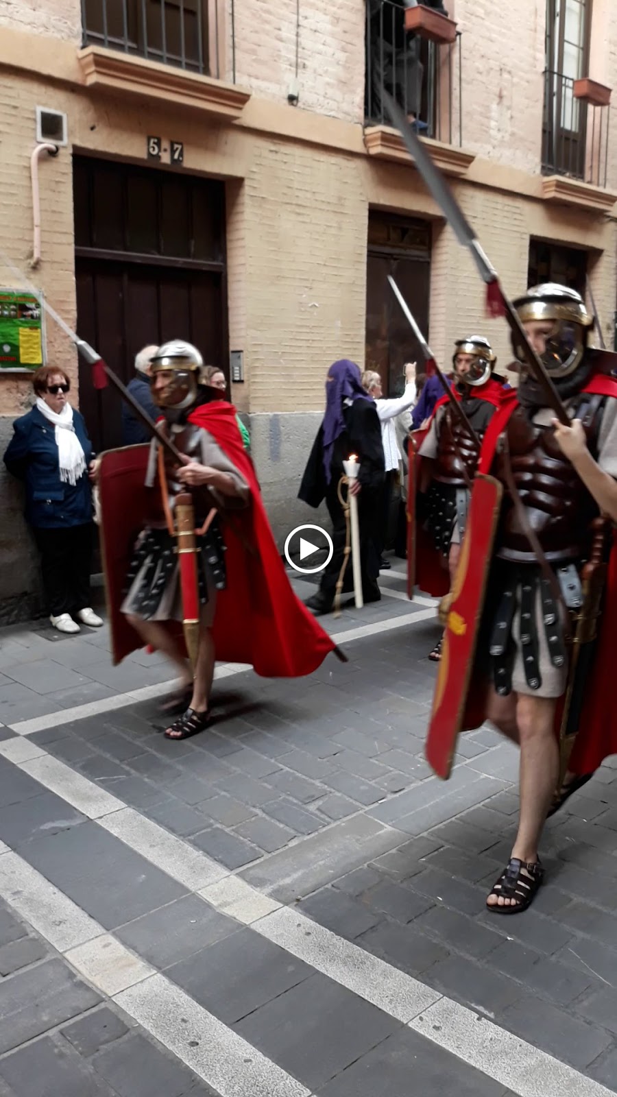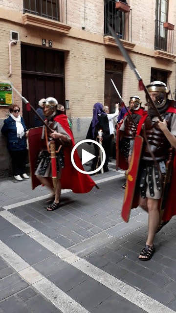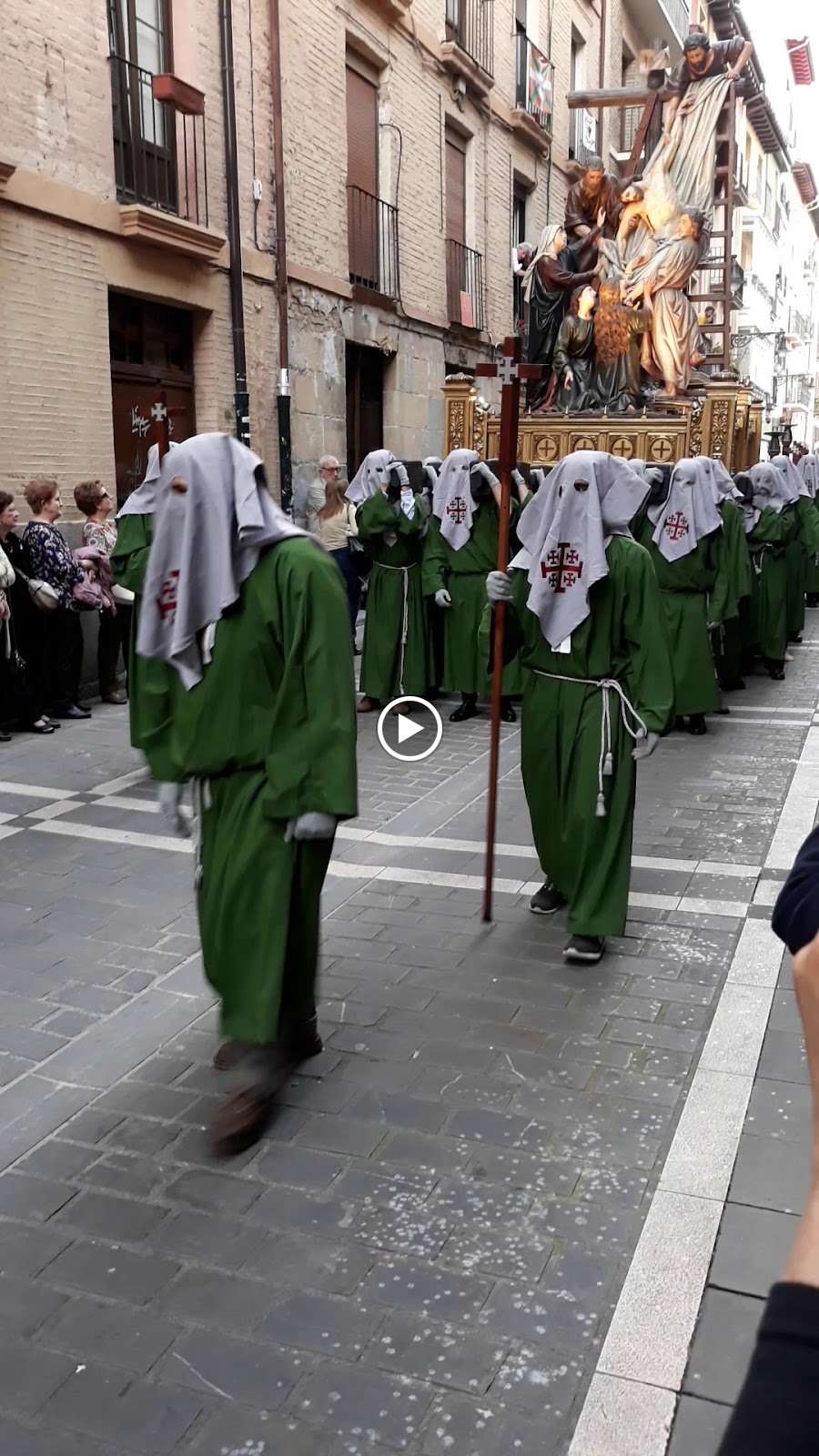 Posteriormente retornamos al albergue y presenciamos la impresionante y multitudinaria "Procesión del Santo Entierro" , que se lleva a cabo en Pamplona los viernes santos . Vimos como se transportaban en andas , con gran esfuerzo , 12 grandes grupos escultóricos vinculados con la vida y muerte de Cristo.